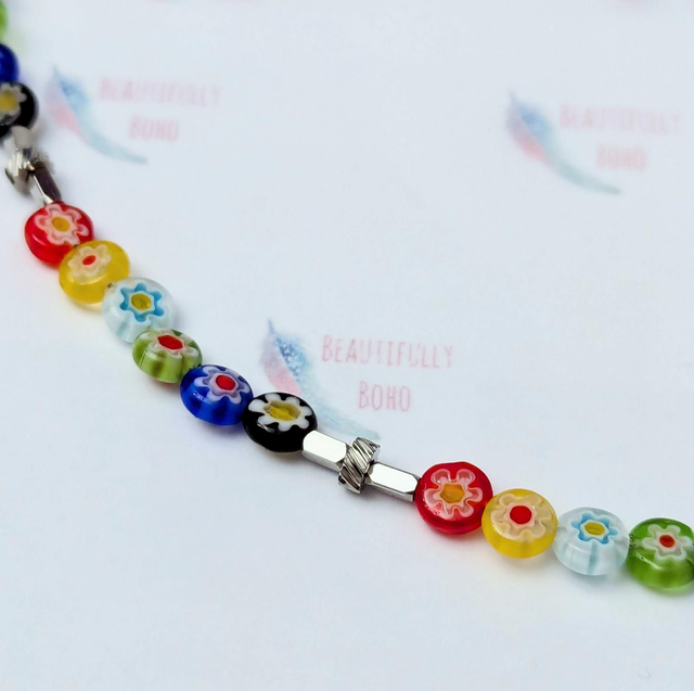 ▪️ Beautiful necklace created with 6mm round, flat Millefiori/Murano glass and stainless steel beads.