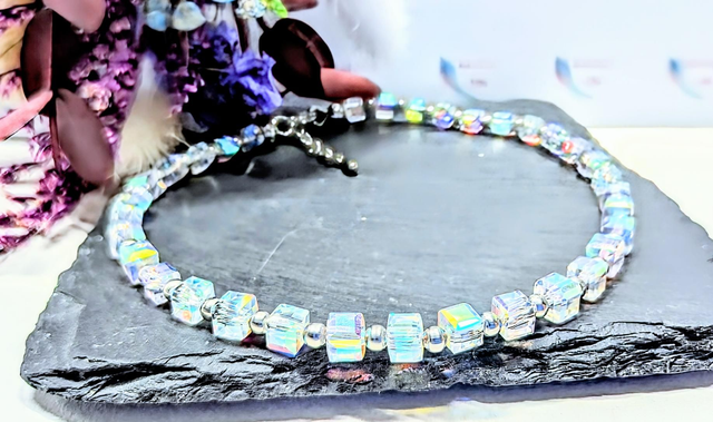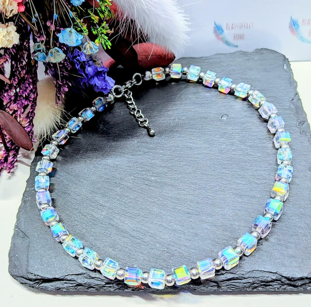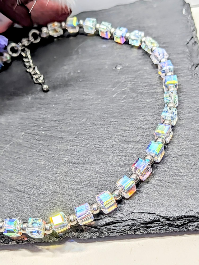 ▪️ Beautiful beaded anklet created with 5mm Iridescent cube glass beads & 3mm stainless steel beads.