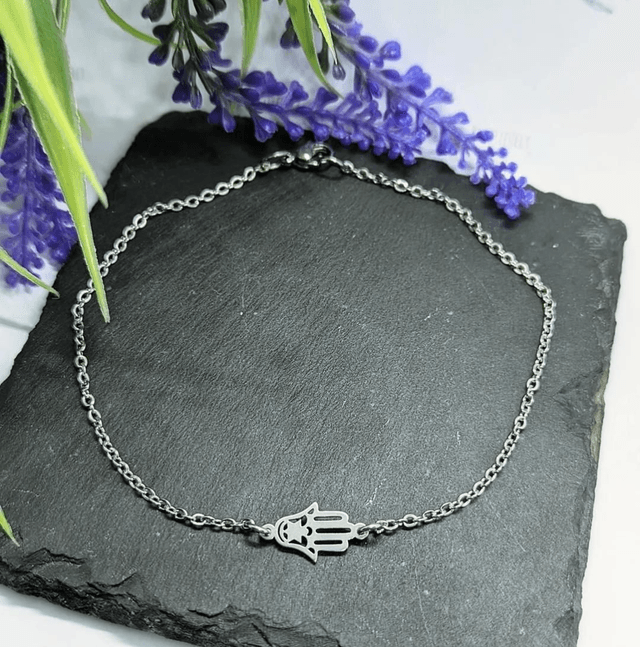 ▪️ Beautifully handmade stainless steel cable chain anklet with Hamsa Hand/Hand of Fatima charm.