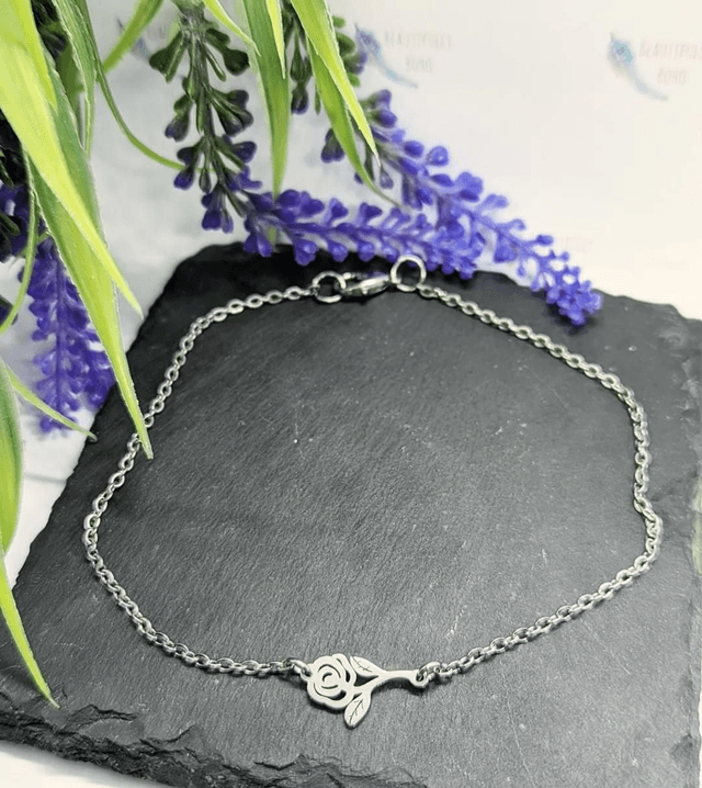 ▪️ Beautifully handmade stainless steel cable chain anklet with Rose charm.
