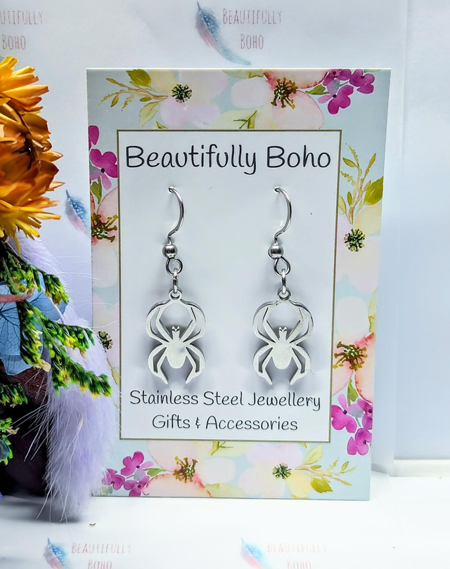 ▪️ Beautiful stainless steel dangle/drop Halloween themed Spider earrings.